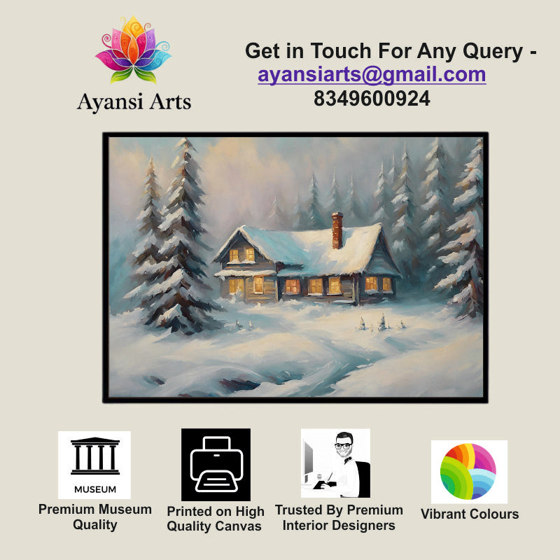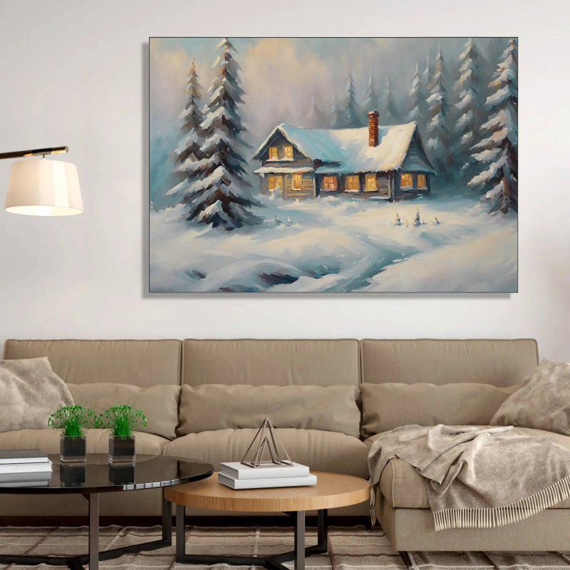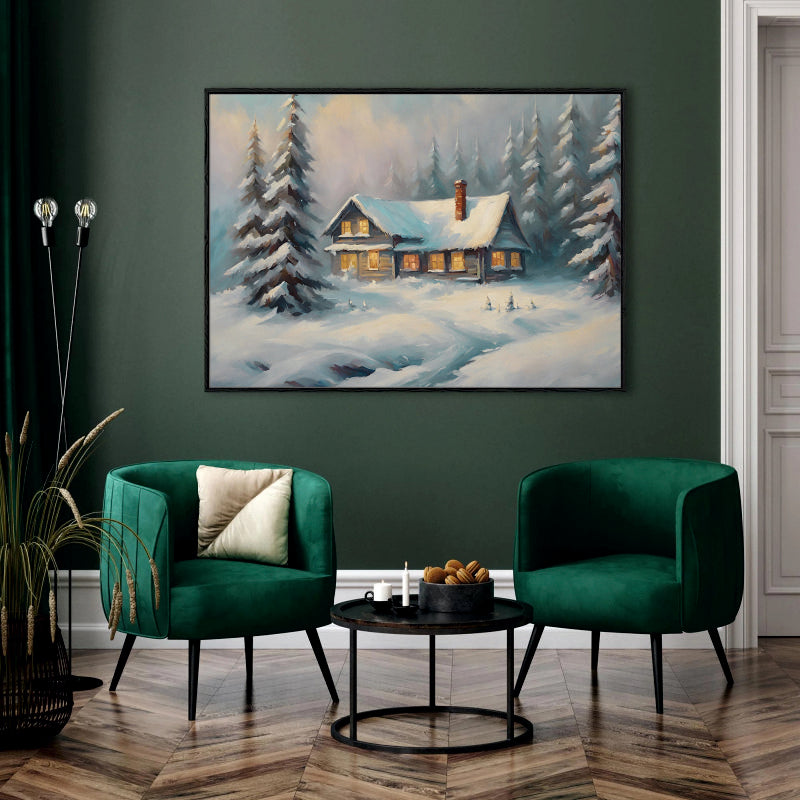 Winter's Warmth: A Snowbound Cabin Canvas Digital Painting