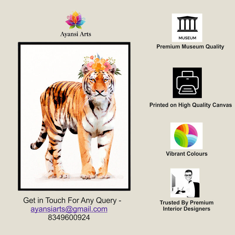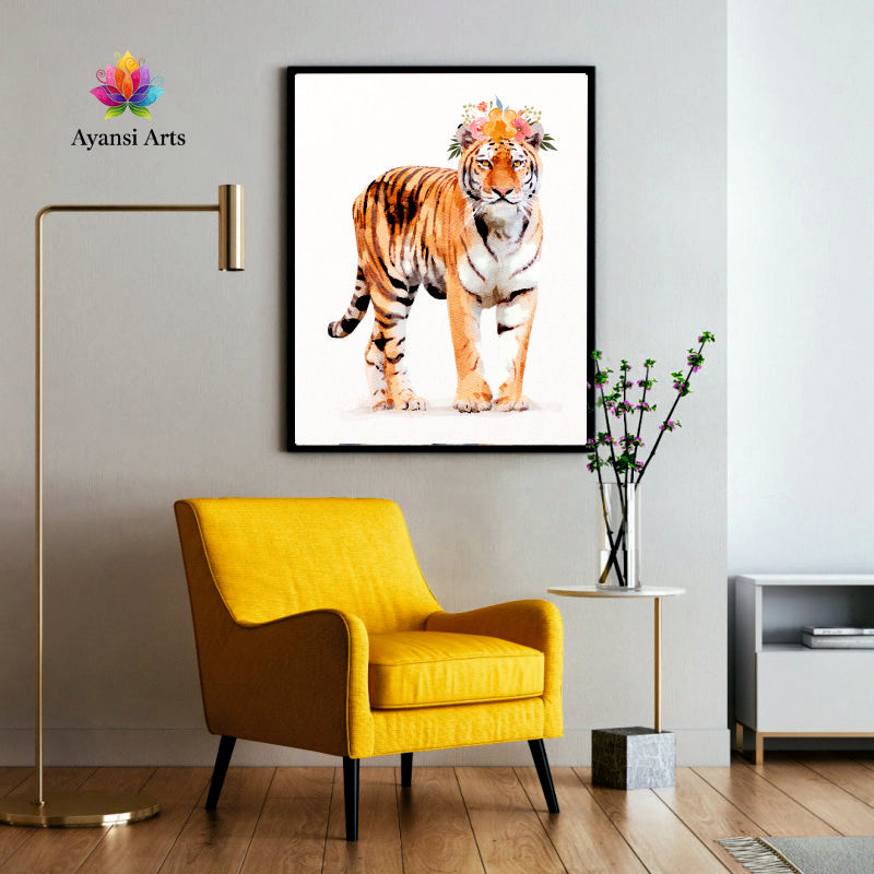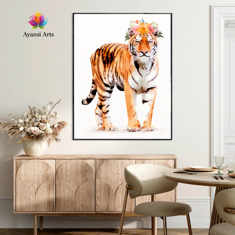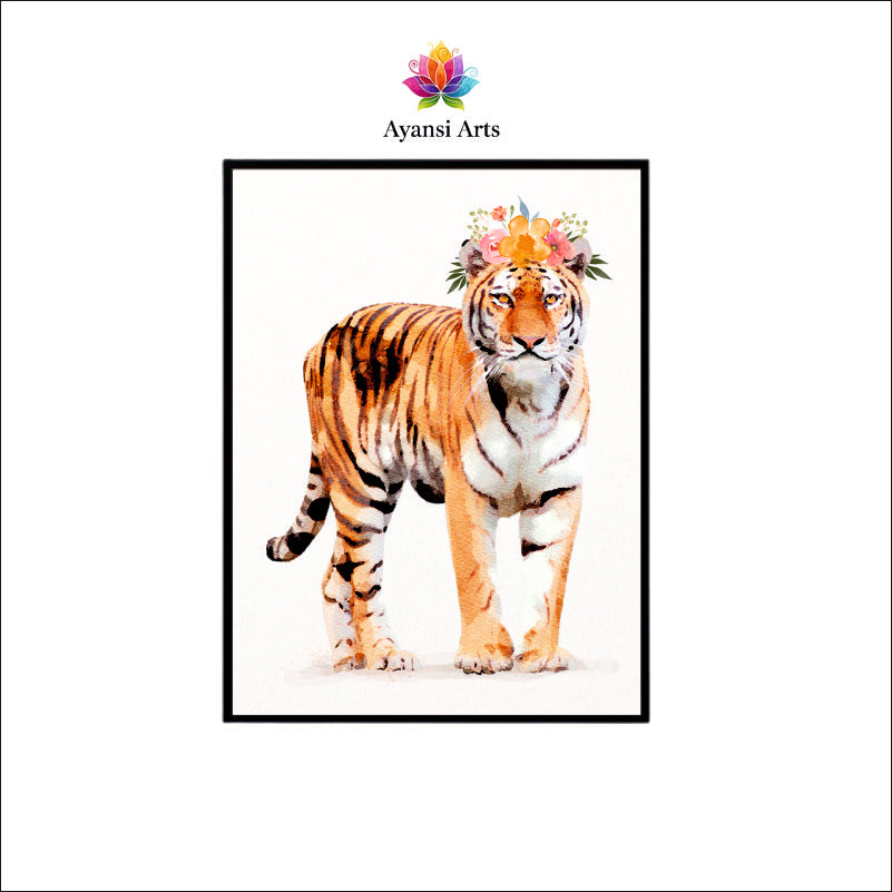 Regal Bloom Tiger - Whimsical Wildlife Art by Ayansi Arts